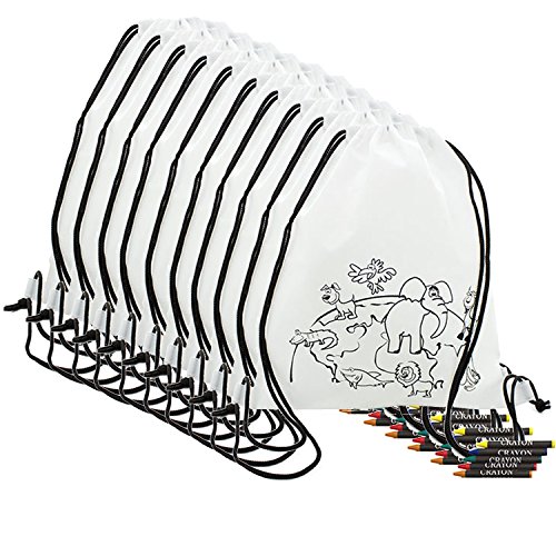 Lotto di 10 zaini per bambini da colorare. Include le cere colorate Ideale per regali per feste di compleanno, comunioni ...