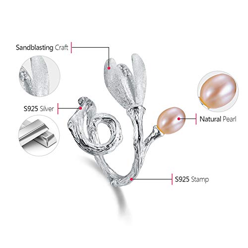 Lotus Fun - Anello in Argento Sterling 925 a Forma di Magnolia, con Perla Naturale, Fatto a Mano, Gioiello Unico per Donne e Ragazze