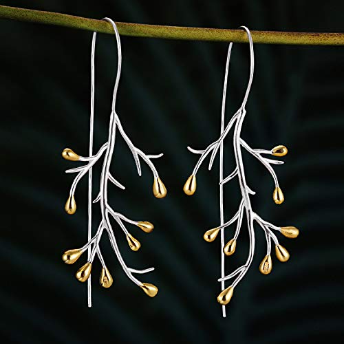 Lotus Fun S925 orecchini da donna in argento Sterling a forma di ramo, orecchini a goccia, gioielli fatti a mano, gioielli unici, regalo di Natale