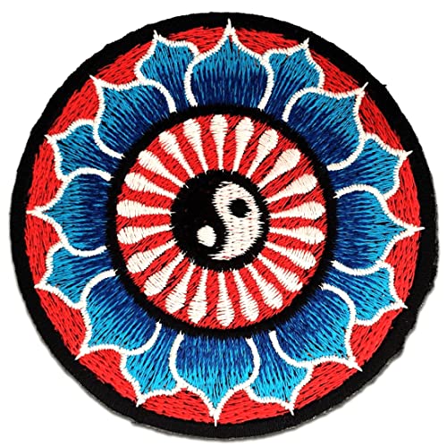 Lotus Yin Yang Spirituale - Toppe Termoadesive Patch Toppa Ricamate, Misura: 8 x 8 cm, Farbvariante:rosso