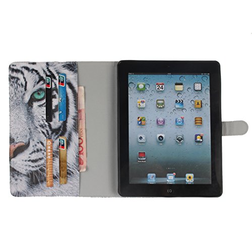 Lotuslnn Custodia per iPad Air, in pelle poliuretanica, a portafoglio, per iPad 5 + 1x pennino capacitivo (panda) iPad 2/3/4 B Weiß Tiger