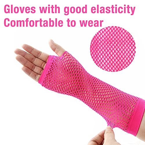【Stile di design unico】 Guanti a rete, orecchini vintage, occhiali a strisce rosa e fascia in pizzo colorato anni '80 ti faranno sembrare luminoso e affascinante.