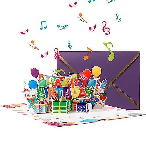 Lotvic Biglietto Auguri Compleanno, Biglietto Di Auguri Pop-Up, Biglietto di Compleanno, Biglietto pop-up 3D Fatto a Mano, Biglietti di Auguri Musicali, Regalo Amica Compleanno con Busta e LED