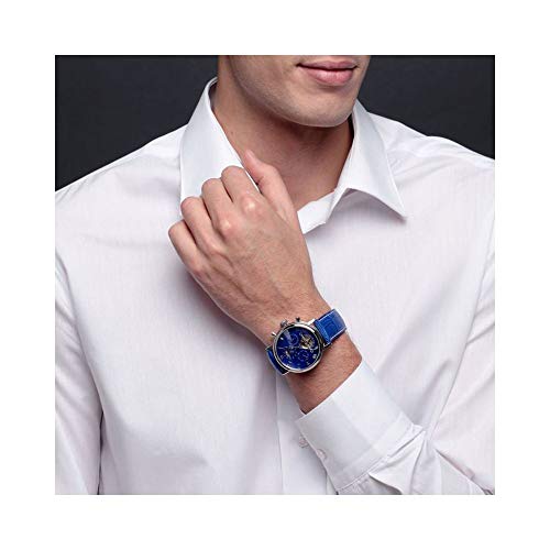 Louis Cottier - Orologio automatico Tradizione Quadrante Blu - Cassa in acciaio 42 mm - Braccialetto in pelle blu - uomo