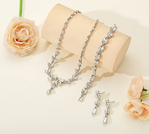 ✿Eleganti gioielli da sposa per la sposa ✿Sei preoccupato di come scegliere il set di collana e orecchini da abbinare al tuo bellissimo abito da sposa?Abbiamo abbinato con cura collane, bracciali e orecchini pendenti con strass per te, risparmiando tempo sull'abbinamento dei gioielli. Ci sono set di collane di cristallo a goccia e gioielli con foglie CZ tra cui scegliere, che possono abbinarsi al tuo splendido vestito.