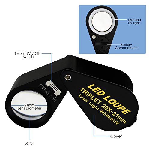 Ingrandimento di potenza 20x: 6 luci LED + luce UV, lente da 21 mm, con ingrandimento più utile.