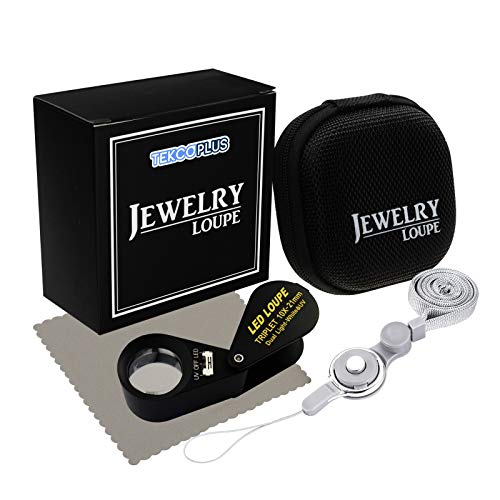 10x 21mm Led Loupe Jeweler Lente D'Ingrandimento Doppio 6 Led Luci (Bianco E Luce Uv, Cornice Nera, Tasca Pieghevole, Lente Tripletta Lente D'Ingrandimento