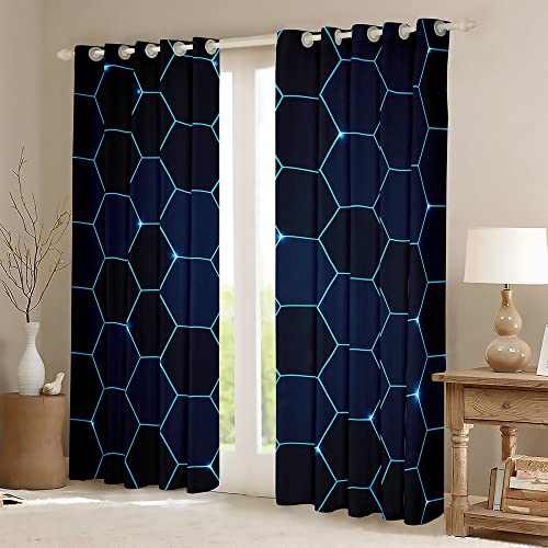Loussiesd Tende a tema esagonale a nido d'ape con geometria moderna, per camera da letto, soggiorno, bambini, tende oscuranti geometriche, alveare blu per finestre W46 x L54