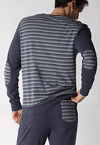 LOVABLE Interlock, Pigiama Lungo Girocollo con Serafino, Uomo, Blu (Mel Multi Righe), L