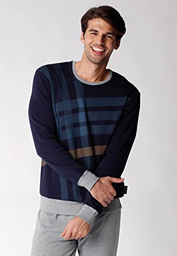 LOVABLE Interlock, Pigiama Lungo, Uomo, Blu (Navy Notte Stampato), S