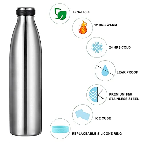 Fpr freddo 24 ore e caldo per 12 ore, perfetto per il regalo. Questa bottiglia termica è realizzata in acciaio inox 18/8 con tecnologia ultra moderna a doppia parete, si ottiene sia stile che sostanza, moda e funzione.