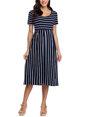 Love2Mi Abito premaman da donna, a maniche corte, lunghezza al ginocchio, A-Line, Blu navy a strisce bianche, XL