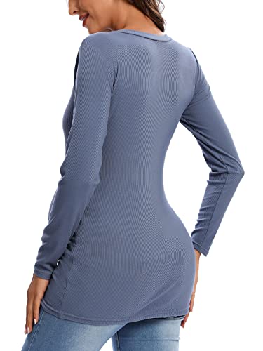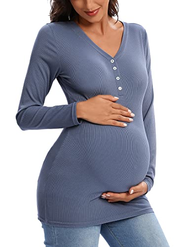 Love2Mi Maglia da allattamento a maniche lunghe con scollo a V, Nursing Tops, blu navy, L