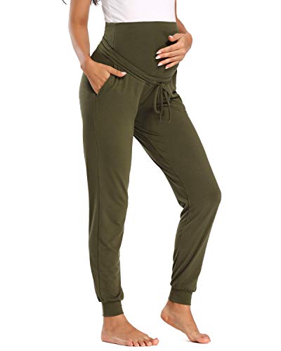 Love2Mi - Pantaloni premaman per gravidanza, per jogging, con 2 tasche, verde militare, M