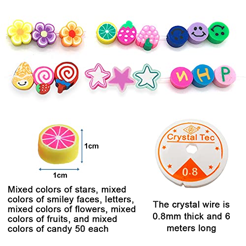 LOVECENTRAL 300 perline di argilla polimerica con linea elastica da 6 m, perline di fiori, perline di frutta, 10 mm perline colorate per fai da te, braccialetti, collane, bigiotteria
