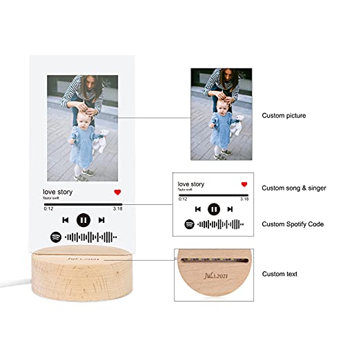 Lovejewellery Foto Luce Notturna in Acrilico con Codice Spotify Personalizzata Lampada da Notte con Foto Lampada da Comodino per Uomo Donna Appassionato di Musica Famiglia Regalo (Rettangolo)