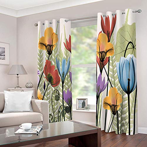 LOVEKKK Tenda Oscurante Fiori Colorati Tende 2 Pezzi Termica Isolante con Occhielli Pannello per Finestre Soggiorno Interni Termiche 100% Poliestere L140xA175cm