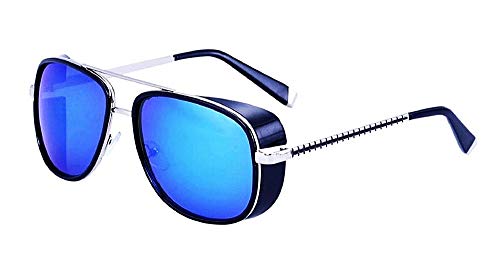 Lovelegis Occhiali da Sole Iron Man Steampunk Retro Uomo Montatura Argento Lente Celeste innovazione metallo vintage supereroe fantastico design unico stile retrò