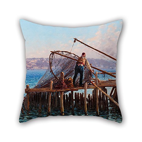 Loveloveu The Oil Painting Fausto Zonaro - Fishermen Bringing In The Catch Pillowcase(Copricuscini e federe)Of 18 X 18 Inches / 45 By 45 Cm Decoration Gift For Kids Couch Teens Outdoor Play Room Dance Room (each Side)