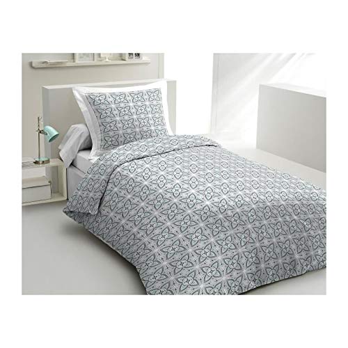 LOVELY HOME Parure de couette 100% coton Diamond - Gris et vert d'eau - 140x200 cm