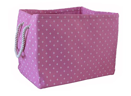Lovely rosa/bianco Star design morbido pieghevole ampia base rettangolare, contenitore per giocattoli e sacco portabiancheria con manici in corda