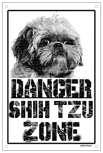 LOVELYTILES Danger Shih Tzu Zone Targa Cartello Metallo attenti al Cane Metal Sign (20X30)