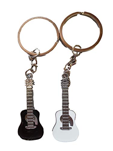 2 lovers guitars black & white bodies silver metallic enamel keyring handbag charm gift uk seller - posted from London only by Fat-catz