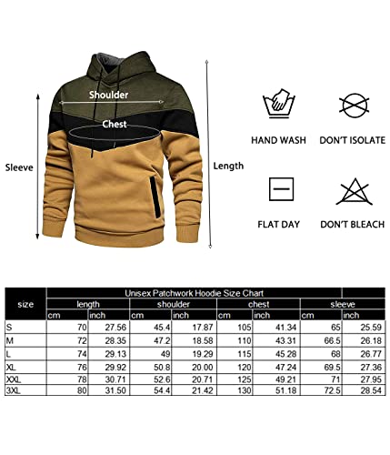 Loveternal Felpa con Cappuccio da Uomo Patchwork in Pile Pullover da Donna Manica Lunga a Blocchi di Colore Cachi Felpa Casual Sport Outwear Felpa con Cappuccio Top Streetwear Pullover con Tasca XXL