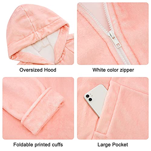 Loveternal Rosa Felpe Donna Pink Cerniera Felpa con Cappuccio Oversize Pullover Blanket Hoodie Zip Coperta Morbida Super Jumper Confortevole Fleece Sweatshirt M