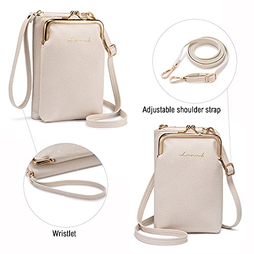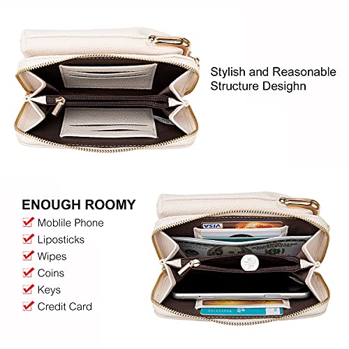 LOVEVOOK Borsa Porta Cellulare, Borsa tracolla Donna piccola Borsa a tracolla per telefono Borse portafoglio mini Bag Borsetta tracolla in pelle per cellulare Sotto a 6,5 pollici, Bianco