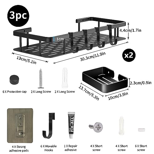 LOVICVKEM Tre Pezzi Mensola da Doccia,Senza Foratura Portaoggetti per Bagno da Parete, porta sapone bagno con 4 Ganchos y pegatinas, per bagni e cucine, mensola doccia senza foratura,nero