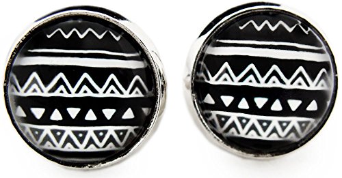 Miss Lovie donna orecchini etnico PATCHWORK Cabochon 12 mm orecchini in bianco e nero