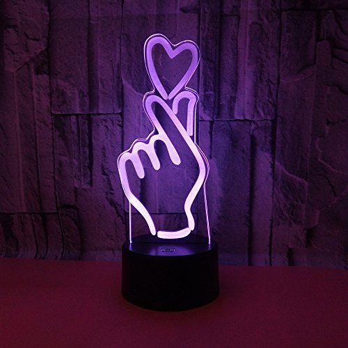 3D Loving Hand Gesture Finger Heart Night Light Illusion Lampada 7/16 Cambiamento di Colore LED Telecomando Touch USB Tavolo Regalo Bambini Giocattoli Decor Decorazioni Natale San Valentino Regalo
