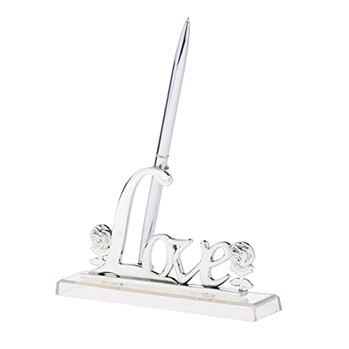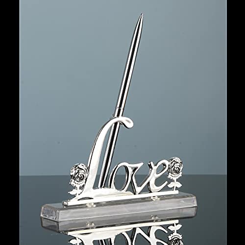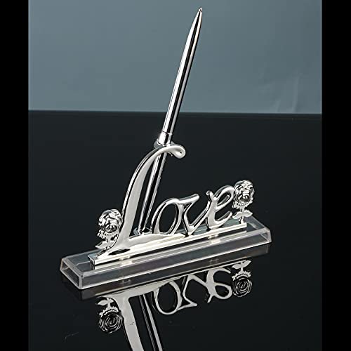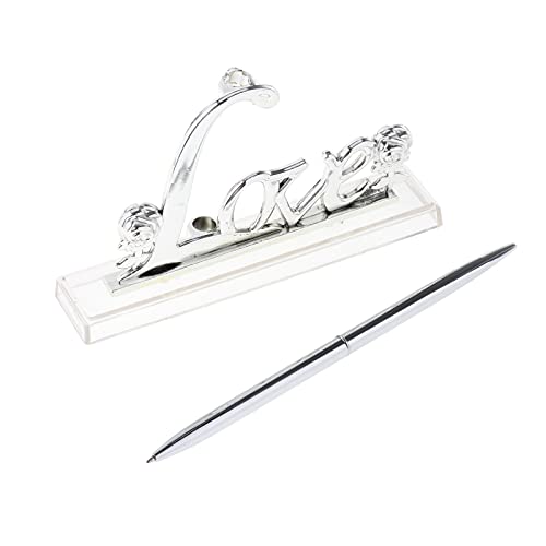 LOVIVER Ricevimento di Nozze Party Silver Guest Book Firma Penna W/Love Sign Pen Stand Holder Decorazioni per La Tavola