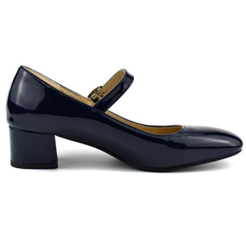 LOVOUO Mary Jane Cinturino Decolte Donna con Tacco a Blocco Basso Comode (39 EU, Blu Navy)