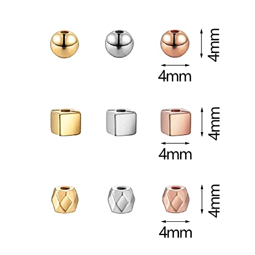 Varietà di stili: I colori delle perline sono argento, oro e oro rosa. Ci sono anche diversi stili, quadrati, tondi, sfaccettati tridimensionali. Combinazioni diverse possono realizzare prodotti finiti di stili ed esigenze differenti.