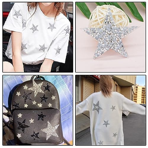 Materiale: La patch stella è fatta di materiale strass con adesivo hot melt sul retro, stabile e non facile da cadere. Può mostrare un effetto brillante sotto la luce, adatto per decorare i vestiti.