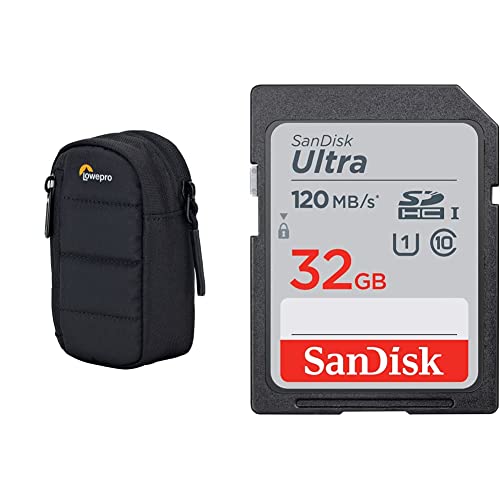 Lowepro, custodia per fotocamera Tahoe CS 20, nera & SanDisk Ultra 32GB SDHC Scheda, fino a 120 MB/s, Class 10, UHS-I, V10