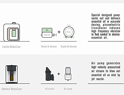 Tecnologia brevettata - Innovazione Vibrazione-Atomizzare che sostituisce l'ugello a getto, tecnologia Droplet-On-Demand per un controllo preciso del dosaggio in modo che il consumo di consegna sia stabile, disperdere rapidamente le molecole senza alterare la composizione dell'olio, modo migliore per utilizzare i vantaggi dell'olio puro.
