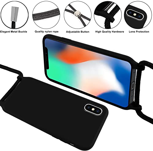 Loyhee Cover con Cordino per iPhone XS/iPhone X, Liquido Silicone TPU Custodia [Morbido Fodera in Microfibra] con Laccio Collana Cellulare Case Antiurto Antiscivolo - Nero