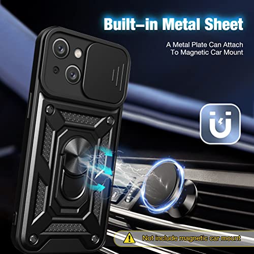 Loyhee Cover per iphone 15 Plus (6.7"), Custodia con Scorrevole Fotocamera Proteggi Supporto di Anello Rotante Hard PC Back Cover e TPU Bumper AntiGraffio Antiurto Case - Nero