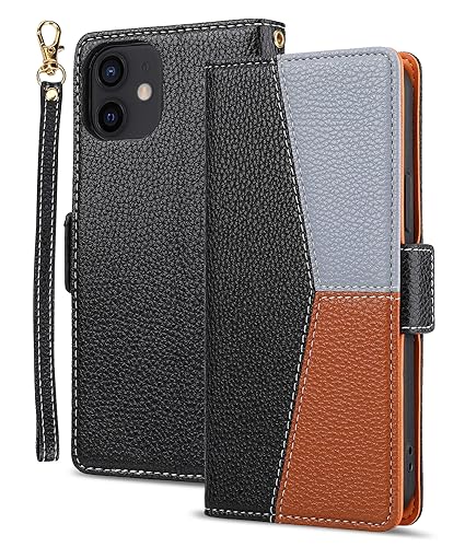 Loyhee Cover per iphone 12 / iphone 12 Pro, Elegante Custodia Flip in Pelle PU con [RFID Blocking] Chiusura Magnetica Scomparti per Carte e Funzione Stand, Antiurto Portafoglio Case - Nero