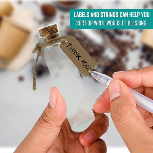 Contenuto: Ci sono 35 vasetto vetro tappo sughero e viene fornito con 35 ciondoli a forma di cuore + 50 piccole etichette + un filo di spago di circa 10 metri + 35 ganci a vite + 6 tappi di ricambio + una scatola accessori piccola, soddisfa diversi usi hobby e fai-da-te