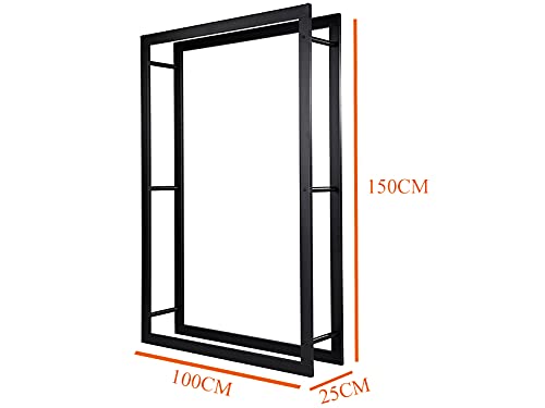 Loywe LW1087 - Scaffale per legna da ardere, in metallo nero (100 x 25 x 150 CM)