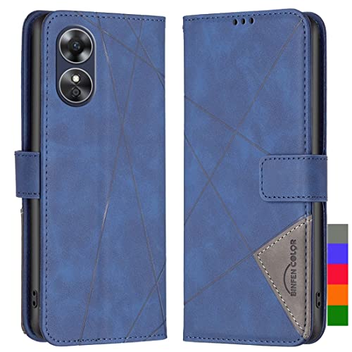 LOYWIN Custodia per Oppo A17 Cover Custodia in Pelle Portafoglio Borsa con Cornice per Foto Magnetico Flip Stand Protettivo TPU Silicone Cover per Oppo A17, Blu
