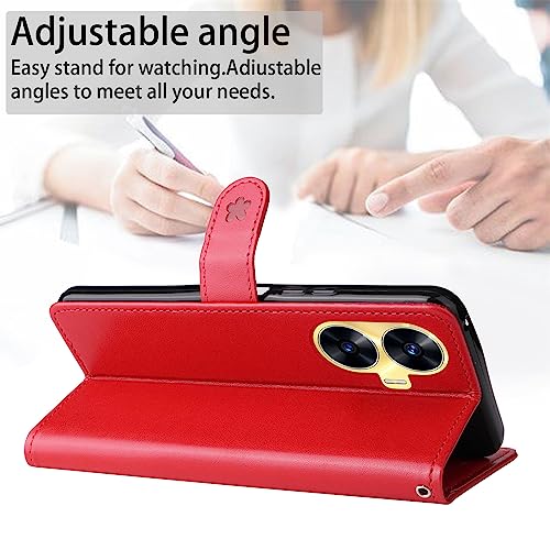 LOYWIN Custodia per OPPO Realme C55 4G Custodia in Pelle per OPPO Realme C55 Cover Portafoglio Borsa con Slot per Schede Magnetico Flip Stand Protettivo TPU Silicone Cover per OPPO Realme C55, Rosso