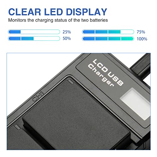 2 X LP-E10 Batteria di Ricambio e LCD Doppio caricatore Compatibile con Canon EOS 1100D, 1200D, 1300D, EOS Rebel T3, T5, T6,Kiss X50, Kiss X70 Digital SLR Camera