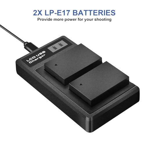 2 X LP-E17 Batteria di Ricambio e LCD Doppio caricatore Compatibile con Canon EOS 77D, EOS 750D, EOS 760D, EOS 8000D, EOS M3, EOS M5, EOS M6, EOS Rebel T6i, EOS Rebel T6s, Kiss X8i
