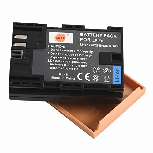DSTE LP-E6 Batteria ricaricabile (confezione da 2) e caricatore USB doppio LED intelligente compatibile con Canon EOS 5D Mark II, DS Mark III, 5D Mark IV, 5DS, 5DS R, 6D, 7D, 80D, 70D, 60D