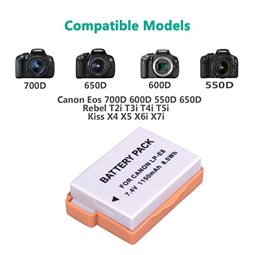 Compatibile con Canon EOS 700d 650d 600d 550d 650d, Rebel T2i, T3i, T4i, T5i, Kiss X4, X5, x6i, x7i DSLR fotocamera, carica batteria Canon Battery Grip BG E8, Canon LC E8 C